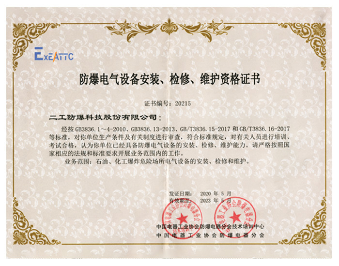 • 防爆設(shè)備安裝-檢修-維護資格..